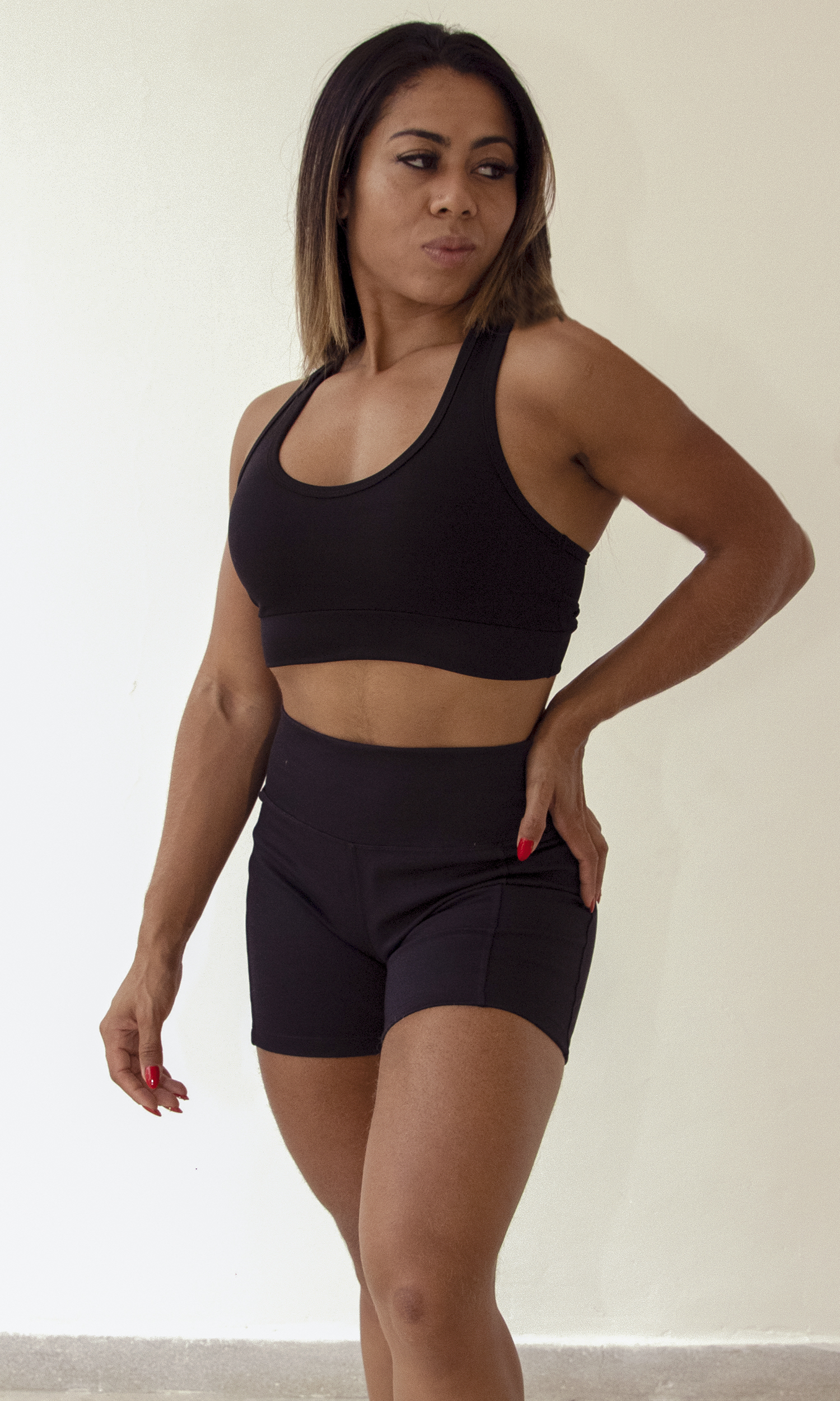 Feito em poliamida premium, oferece toque macio, respirabilidade e secagem ultra rápida, mantendo você sempre fresca e confortável. Além disso, sua modelagem anatômica valoriza as curvas e se adapta ao corpo sem apertar, tornando-se a peça ideal tanto para a academia quanto para aquele look casual cheio de atitude.